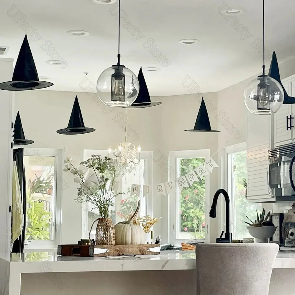 6/12Pcs Halloween Black Witches Hats with Rope Hanging Wizard Hats Bulk for Home Outdoor Porch Halloween Decoration Party Favor
