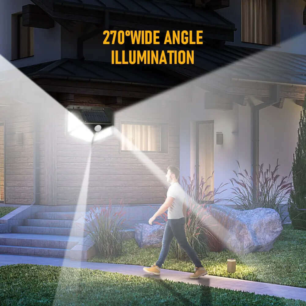 Lampă Solară Perete 100 LED - 1400 Lumeni, Senzor Mișcare, 3 Moduri Iluminat. Aprinde Automat Noaptea, IP65 Rezistentă la Apă. Luminează 8 Ore - Ideală pentru Grindă, Balcon, Curte.