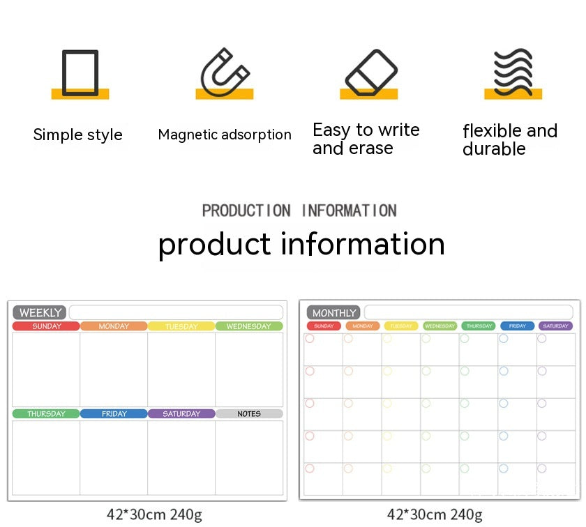 Weekly And Monthly Schedule Erasable Memo Message Board Writing Soft Whiteboard Refridgerator Magnets